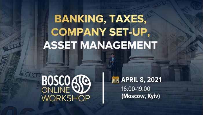 We invite you to take part in the Bosco Online Workshop “Banking, Taxes, Company Set up, Asset Management” on April 8, where you will receive answers to these questions.