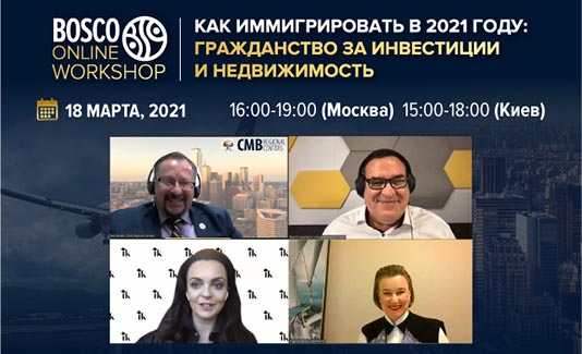 18 марта состоялся Bosco Online Workshop “Как иммигрировать в 2021 году: гражданство за инвестиции и недвижимость”, который собрал вместе международных Спикеров и более 200 зрителей из 40 стран.